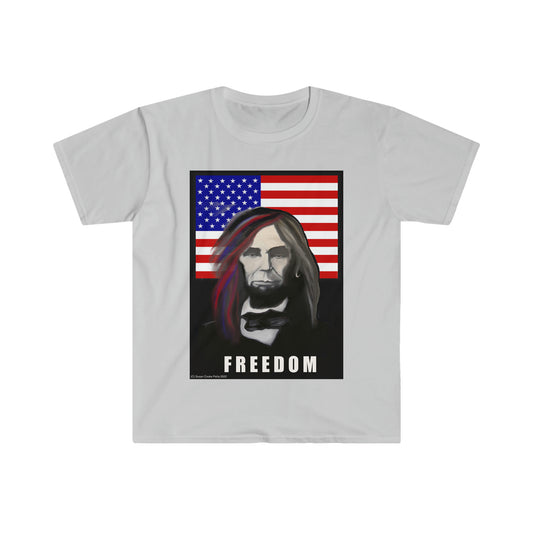 Freedom script - Long haired Lincoln by SCP Unisex Softstyle T-Shirt