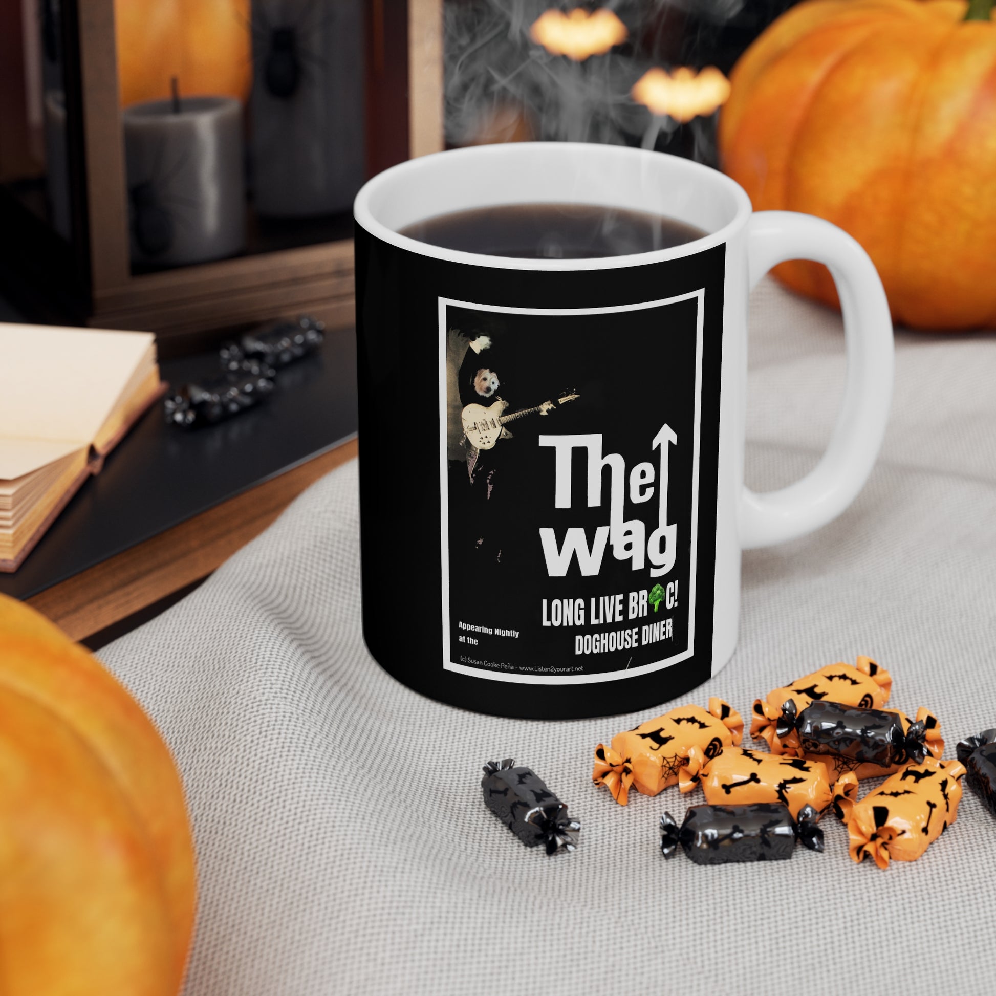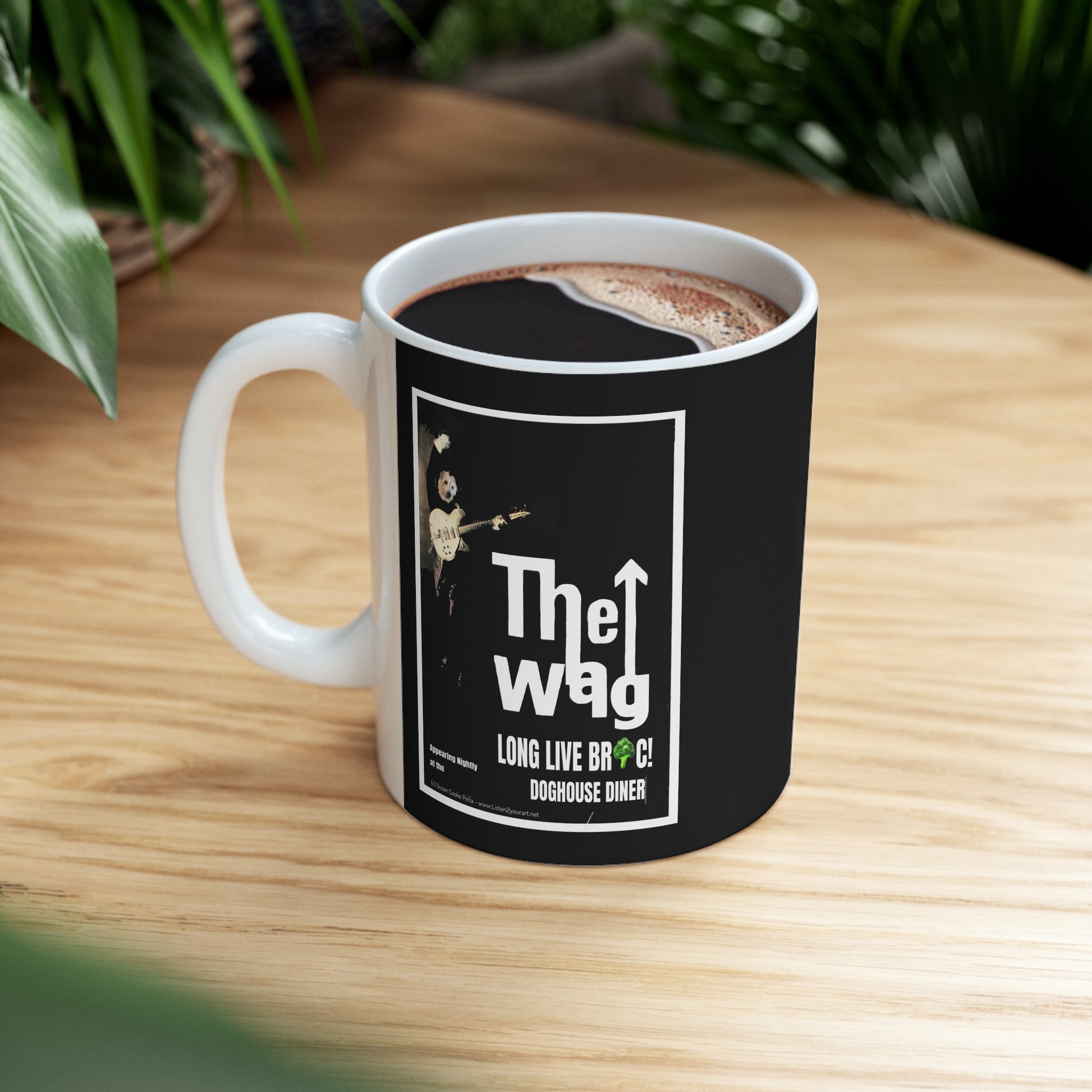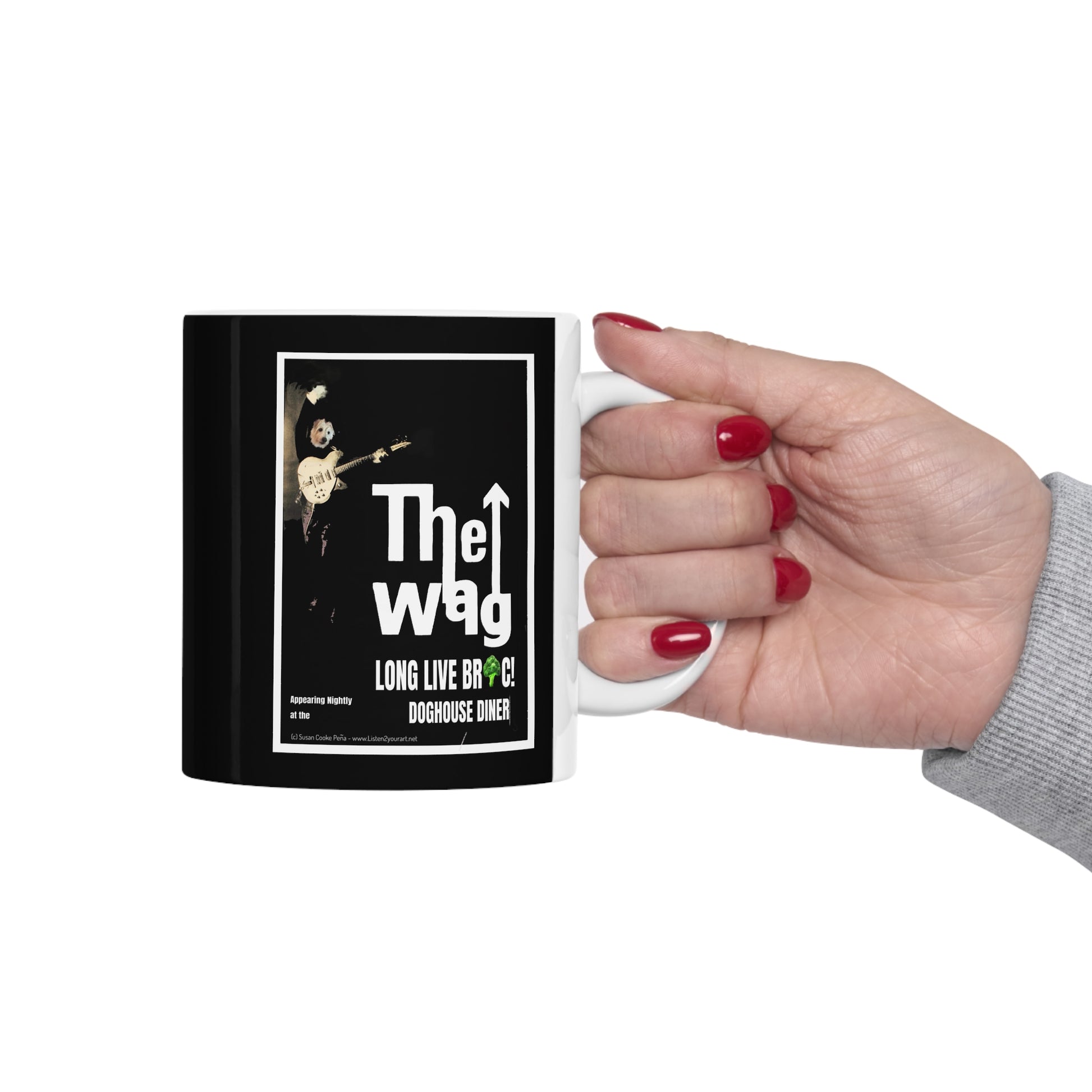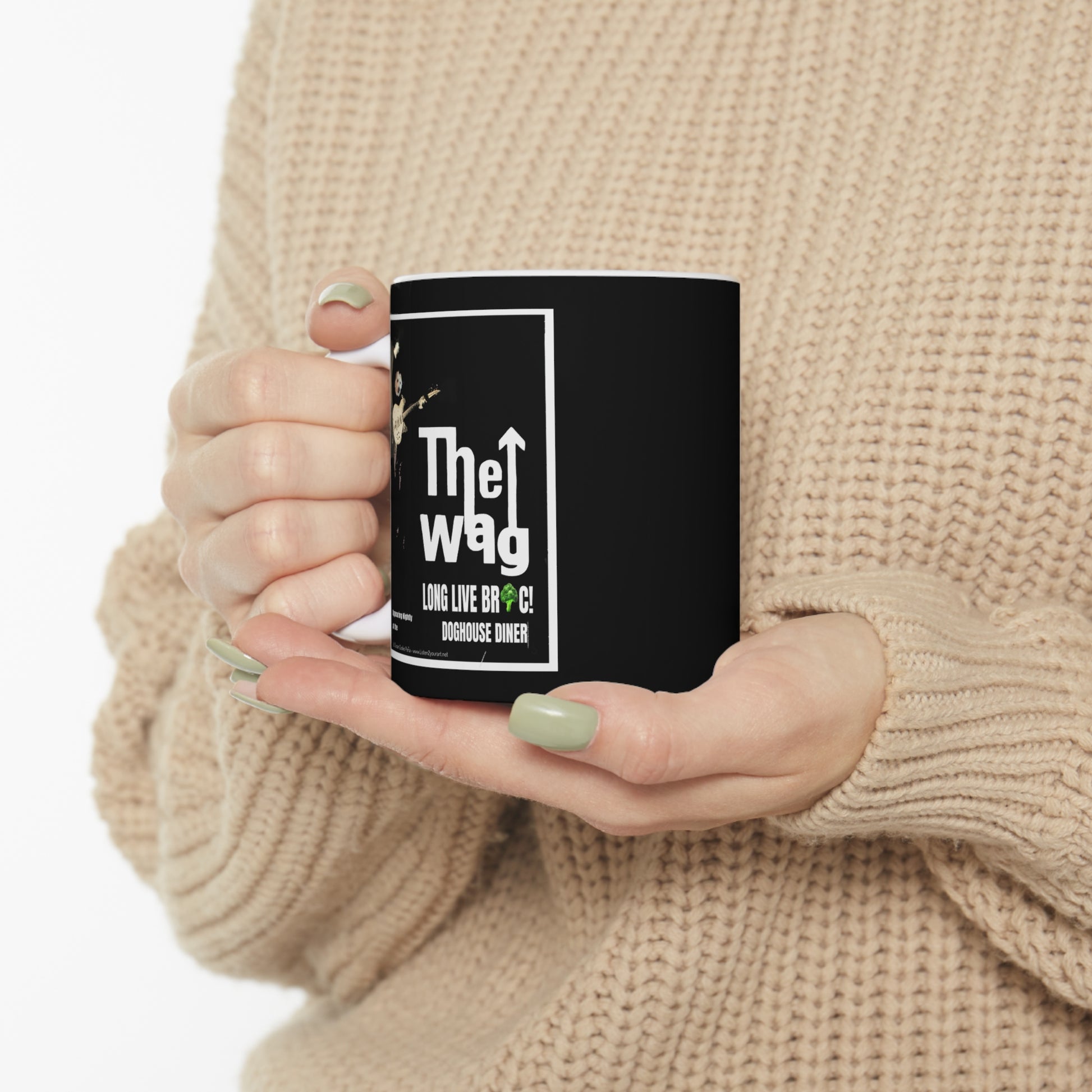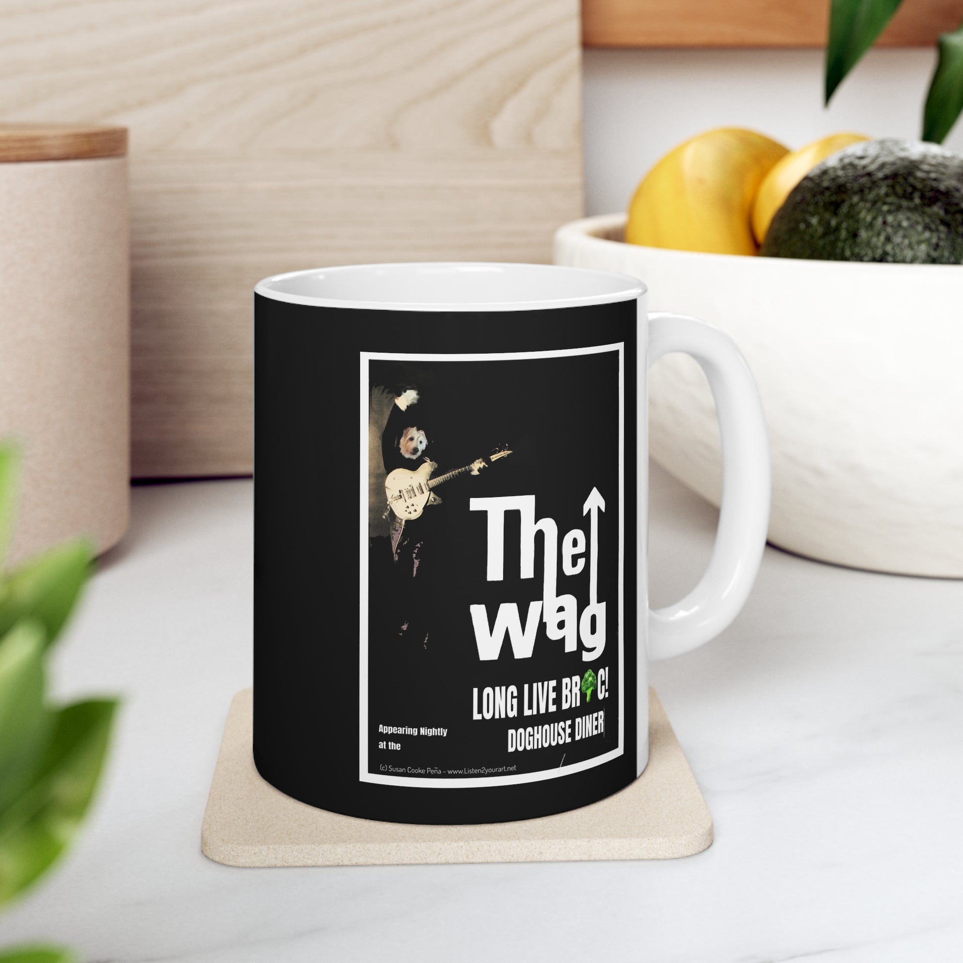 Sir BrennanThe Wag designer coffee mug. Customized cool designs, photos or logos. Add it to the Sir Brennan Kitchen Series -Collect them all and make a set - makes great a great gift! It’s BPA and Lead-free, microwave & dishwasher-safe, and made of white, durable ceramic in an 11-ounce size. Thanks to the advanced printing tech, your designs come to life with incredibly vivid colors – the perfect gift for coffee, tea, and chocolate lovers.